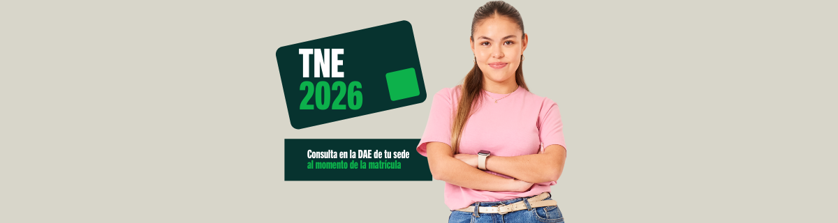 Para solicitar tu TNE, debes completar el formulario que se entrega en tu sede. ¡Te invitamos a acercarte a la DAE para resolver dudas!